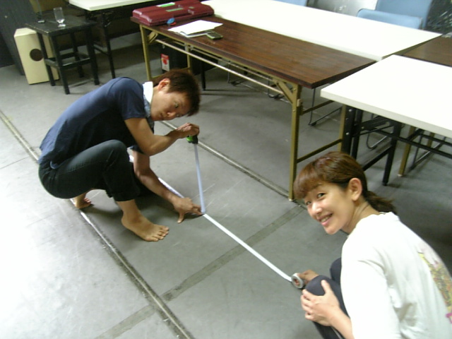 通し後、ホワイエにて、プチ打ち上げ&ミーティング。