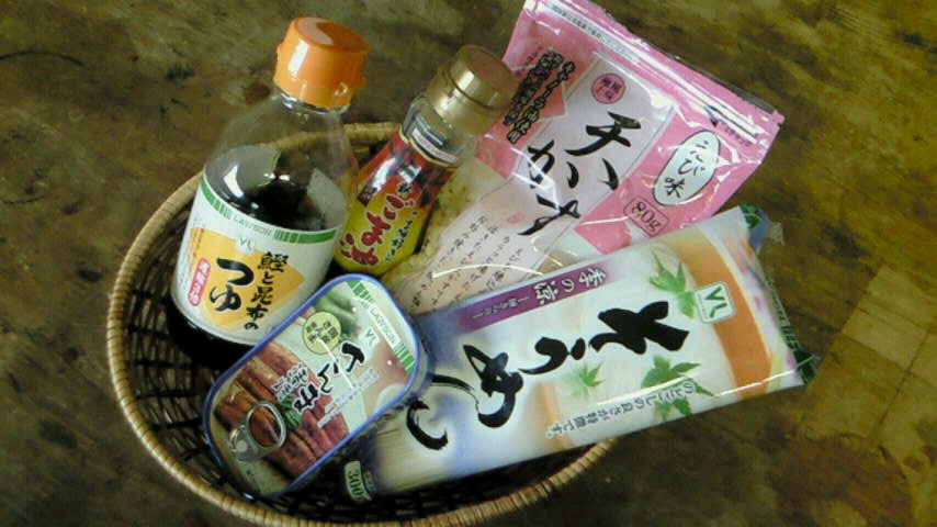 素麺、麺つゆ、揚げ玉、香り付けの胡麻油、