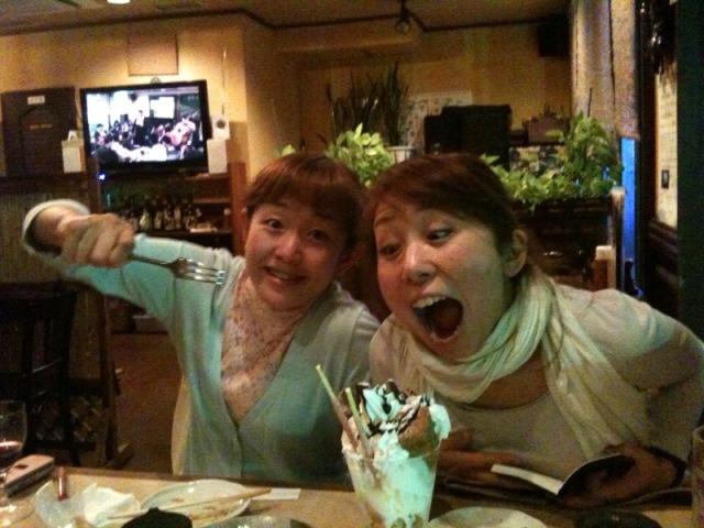 ちゃんとアル三コンの練習をし、登戸の飲み屋さんへ、レイコちんはでっかいビアー、ちぃちゃんはオロナミンCサワー