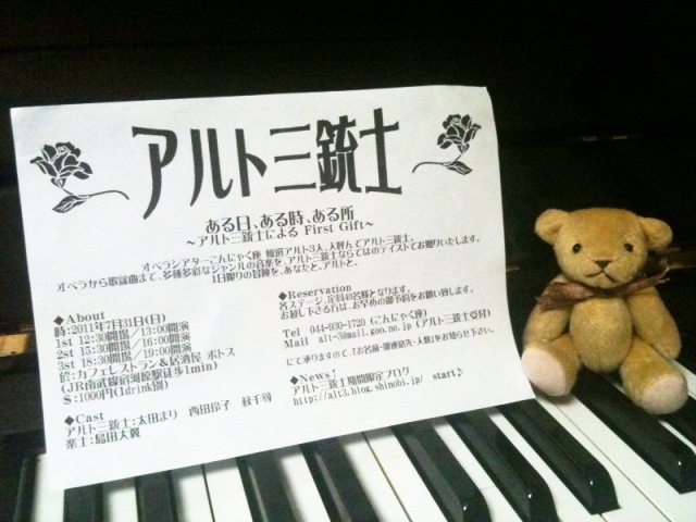 そんな残念なアルトにも関わらず、Aスタジオからは、流麗なピアノの音色が聞こえます。アルト専属楽士様は、本日は『ネズミの涙』の稽古ピアニストとして登板する模様。専属ではなく兼属ですね。売れっ子楽士様は引っ張りだこなのです。