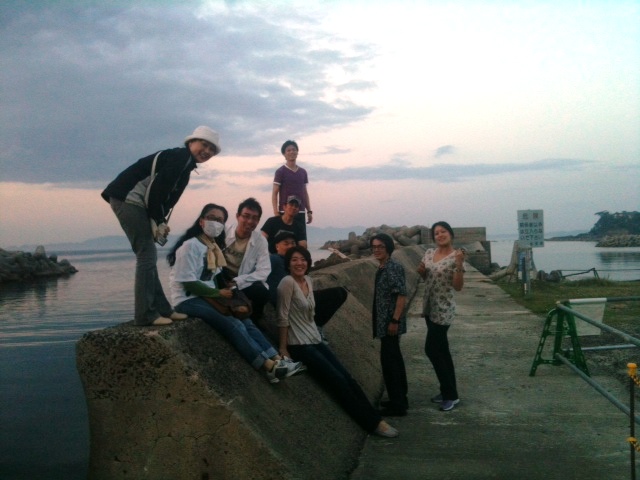 窓の外、水平線に沈みかける夕日のあまりの美しさに、ハイエース組は大騒ぎ。