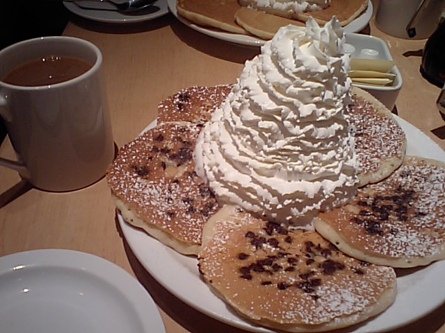 すごいラッキーだね~と盛り上がり、早速、二人揃ってホットケーキをオーダー。私はチョコ好きなのでチョコチップのトッピング。ついでにホイップも